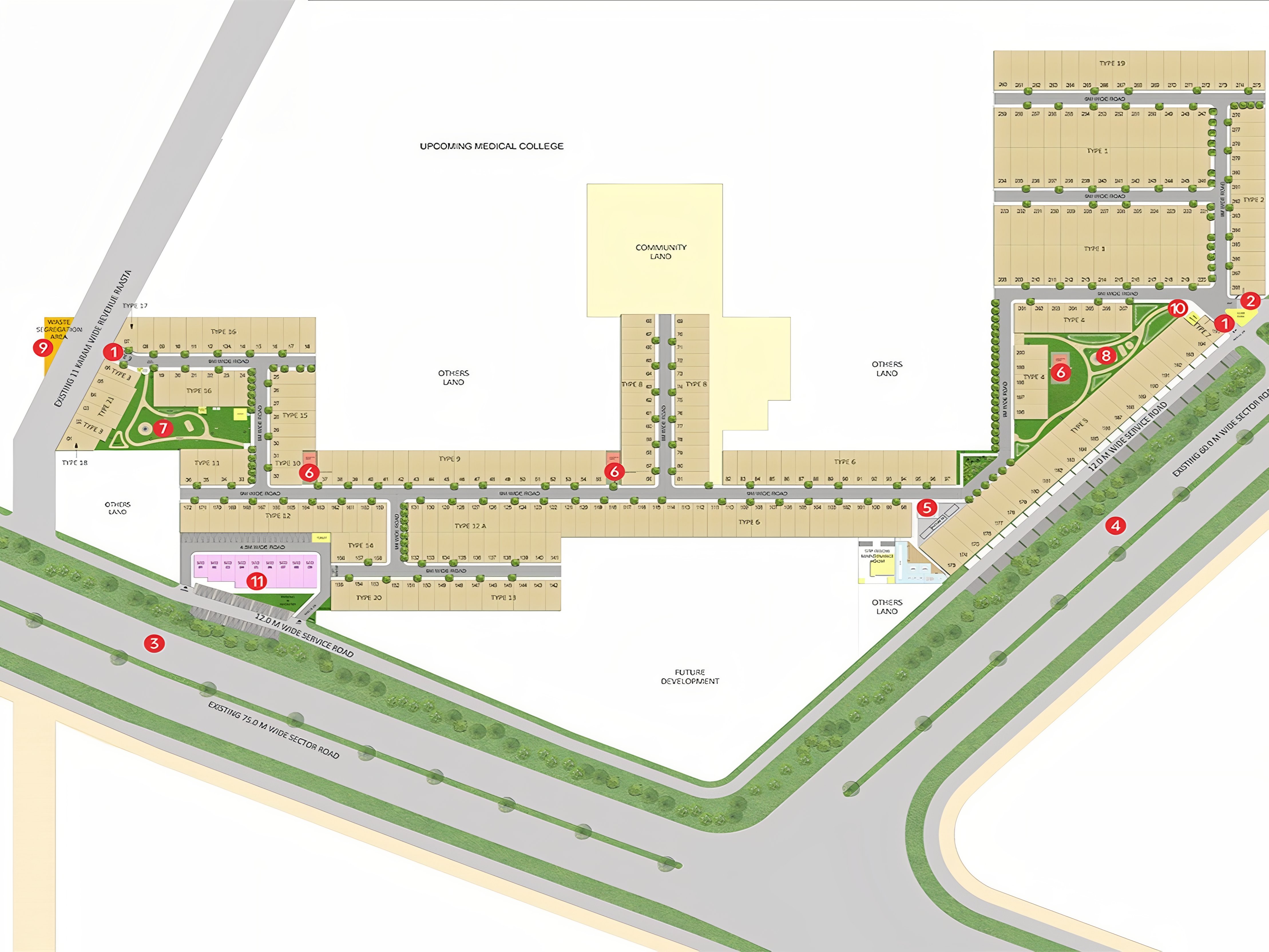 The project is designed for buyers who want the flexibility to build their own independent homes or low-rise builder floors within a secure and well-organized township. Plot sizes are available in multiple configurations, making it suitable for end-users as well as long-term investors.