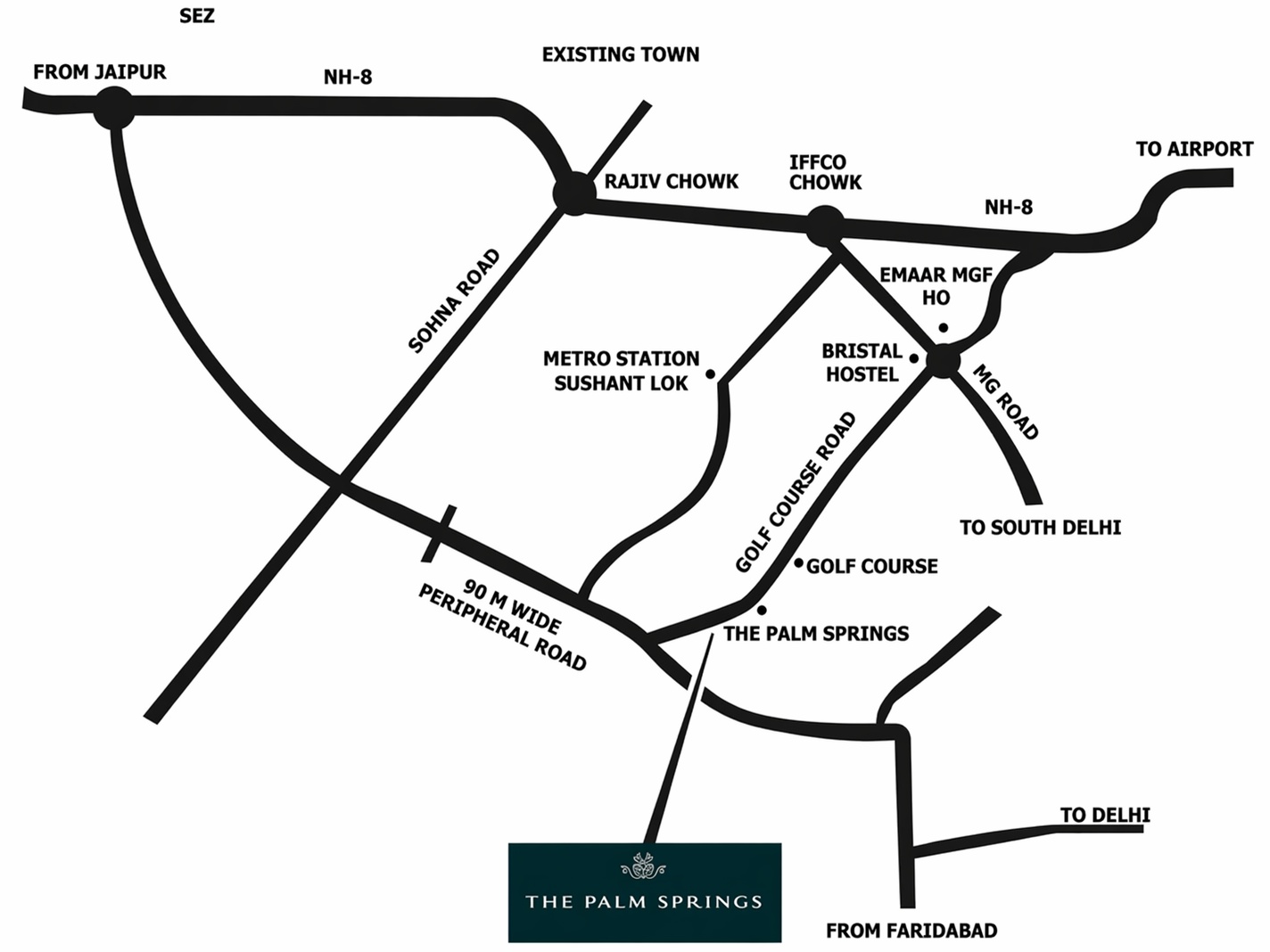 One of the biggest highlights of Emaar The Palm Springs is its prime location on Golf Course Road, providing seamless connectivity to DLF Cyber City, MG Road, Sohna Road, and IGI Airport. The project is surrounded by top international schools, hospitals, business hubs, and luxury retail destinations, making it ideal for both end-users and investors.